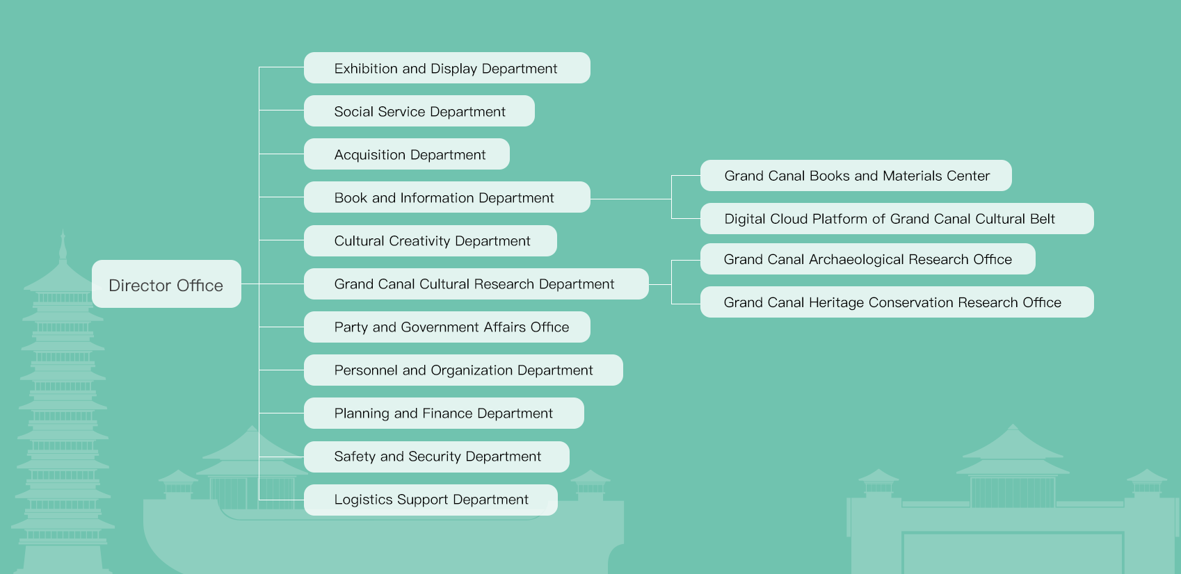 Oversees cultural relics protection, scientific research, acquisition of objects, book and information-based management, finance, and logistics support; and takes charge of the Grand Canal Cultural Research Department (Grand Canal Archaeological Research Office and Grand Canal Heritage Conservation Research Office), Acquisition Department, Book and Information Department (Grand Canal Books and Materials Center and Digital Cloud Platform of Grand Canal Cultural Belt), Planning and Finance Department, and Logistics Support Department.