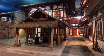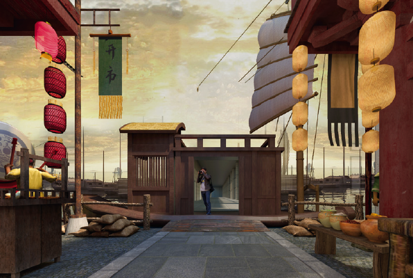 展厅入口——展厅自唐船行至运河岸边开始,入眼即洛阳坊市街景。