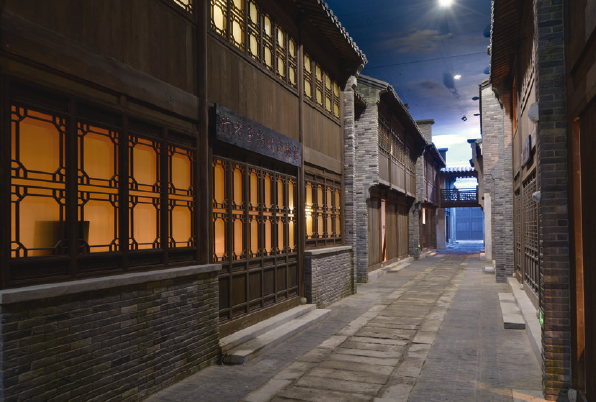 展厅以京杭大运河南段、浙东运河城镇为参照原型,重点表现运河沿线的江南城镇。以水陆并行、百步骑楼、小桥流水、枕河人家等展现烟雨江南。