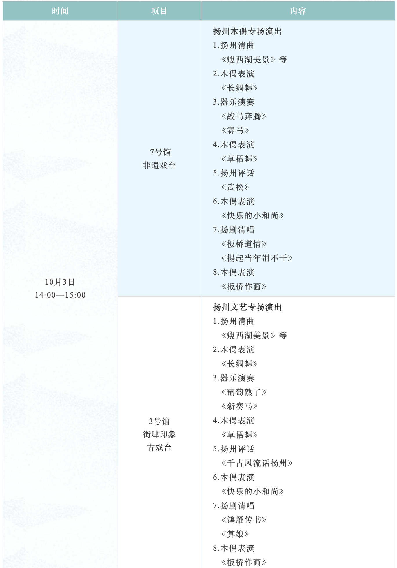 节日期间,非遗演出将在3号馆街肆印象古戏台、7号馆非遗戏台演出,感兴趣的观众可根据演出时间做好参观安排。