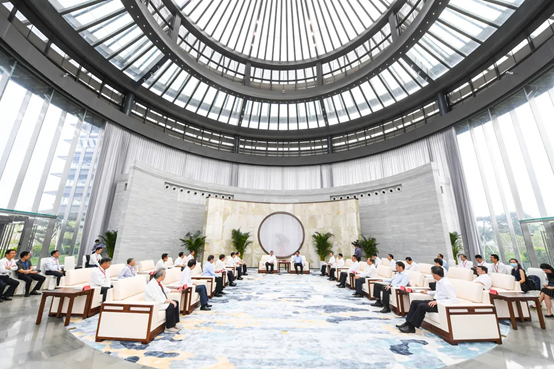 论坛结束后,领导同志和嘉宾兴致勃勃参观了博物馆展览,感受大运河亘古至今的璀璨文化。作为国内首座集文物保护、科研展陈、社会教育为一体的现代化综合性运河主题博物馆,扬州中国大运河博物馆已征集到从春秋至当代反映运河主题的古籍文献、书画、碑刻、陶瓷器、金属器、杂项等各类文物展品逾万件(套),展览通过基本陈列和各专题展示了大运河的千年底蕴、时代价值、当代形象。