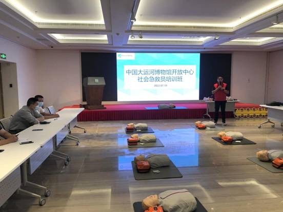 暑期以来,中国大运河博物馆迎来了客流的高峰期,为了加强我馆安全管理工作,有效避免和减轻人员意外伤害,给所有来到中国大运河博物馆的观众们营造一个更安全更有保障的场馆环境,增强馆内一线员工应急救护能力,更好地做好服务工作。近日,中运博邀请了扬州市急救中心和扬州市急救志愿者协会的老师为开放中心的全体员工开展了医疗急救知识培训。介绍在工作中遇到各种突发情况时,如何进行急救和护理的相关知识,提升中运博工作人员的应急救护技能和处置能力。