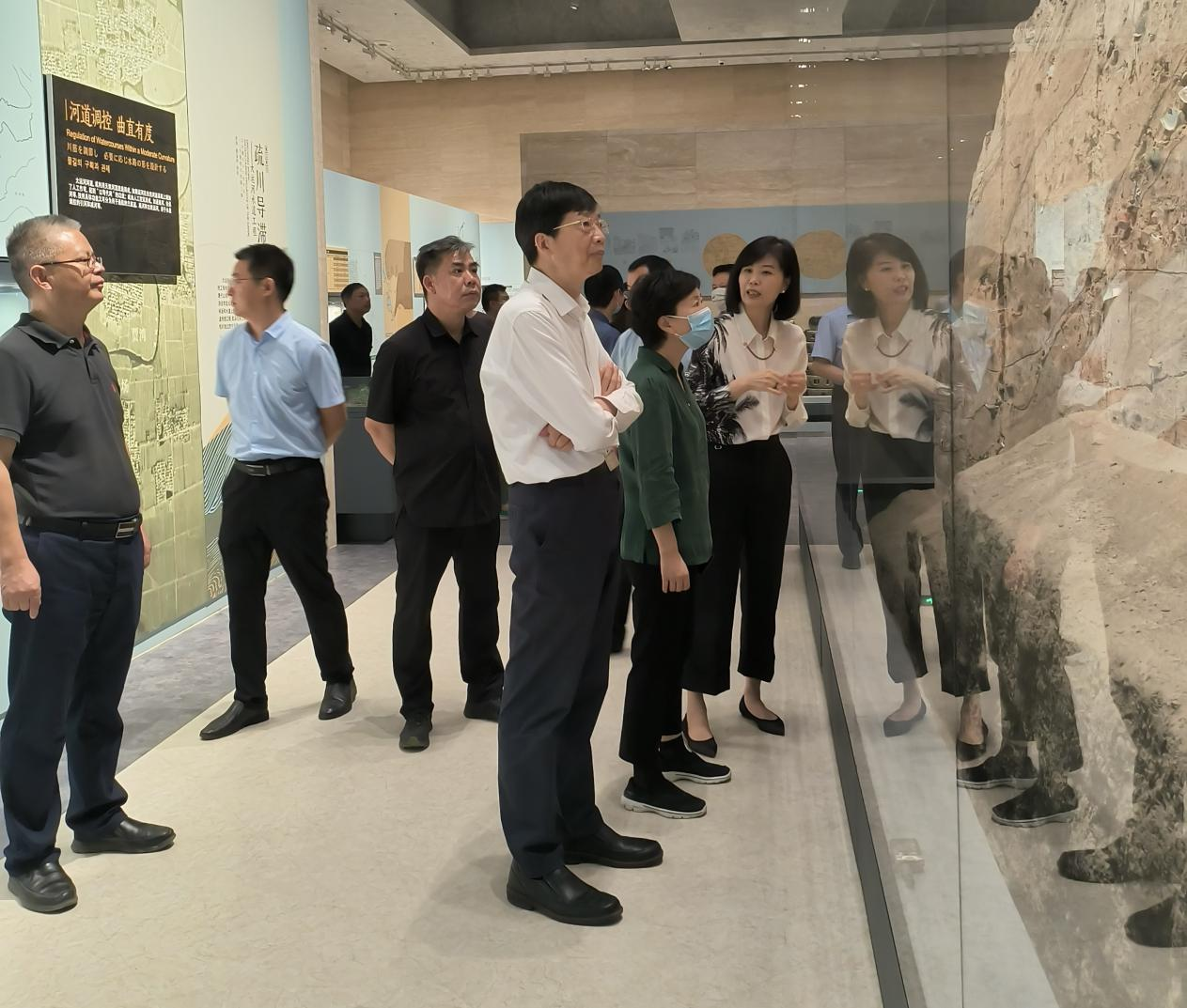 9月7日,国家文物局党组成员、副局长陆进,国家文物局科技教育司司长罗静,国家文物局政策法规司一级巡视员陆琼,国家文物局科技教育司教育处董少君一行来扬调研,实地考察中国大运河博物馆。省文化和旅游厅二级巡视员姚文中,扬州市委常委、宣传部部长张长金陪同调研。