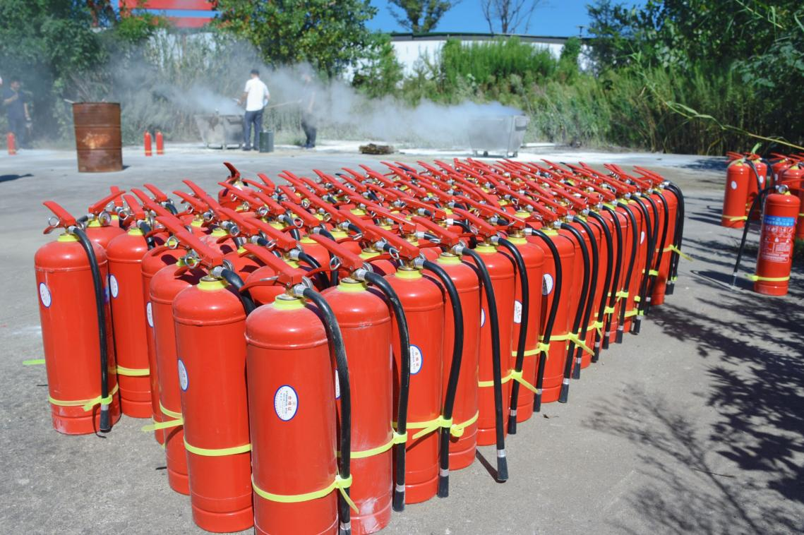 为确保此次演练的顺利开展,安保部工作人员提前测试风向并布置好灭火器、灭火盆、柴油、助燃物等相关演练器材。
