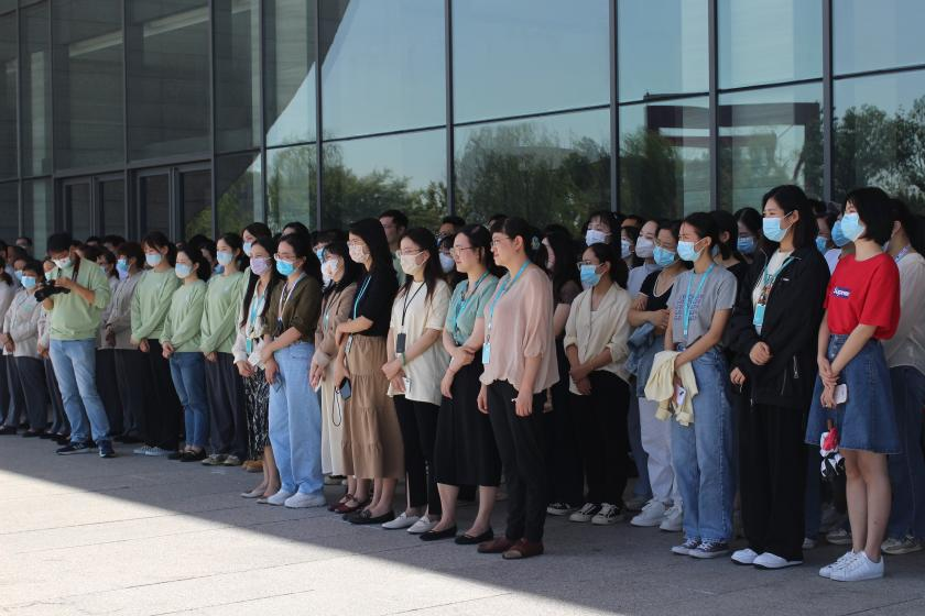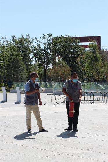 演练前,消防专家在南广场对参演人员进行现场教学,讲解灭火器的使用要领,进行“一提二拔三握四瞄五喷”的实操演示,让全馆员工在较短时间内掌握灭火器的使用技巧。