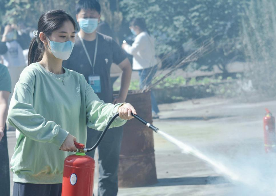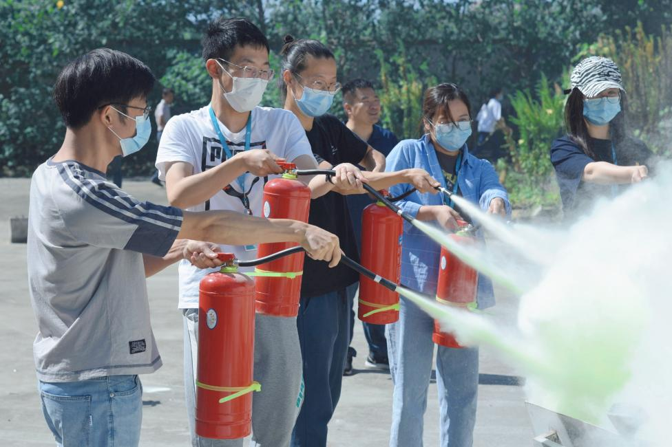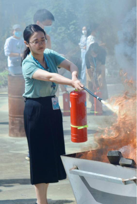 在认真听讲及观摩后,全馆人员进行灭火实操,每位员工都亲自体验了现场灭火的过程。面对燃烧的火焰,大家均能准确使用灭火器材,按照步骤和方法将燃起的浓烟大火迅速扑灭。