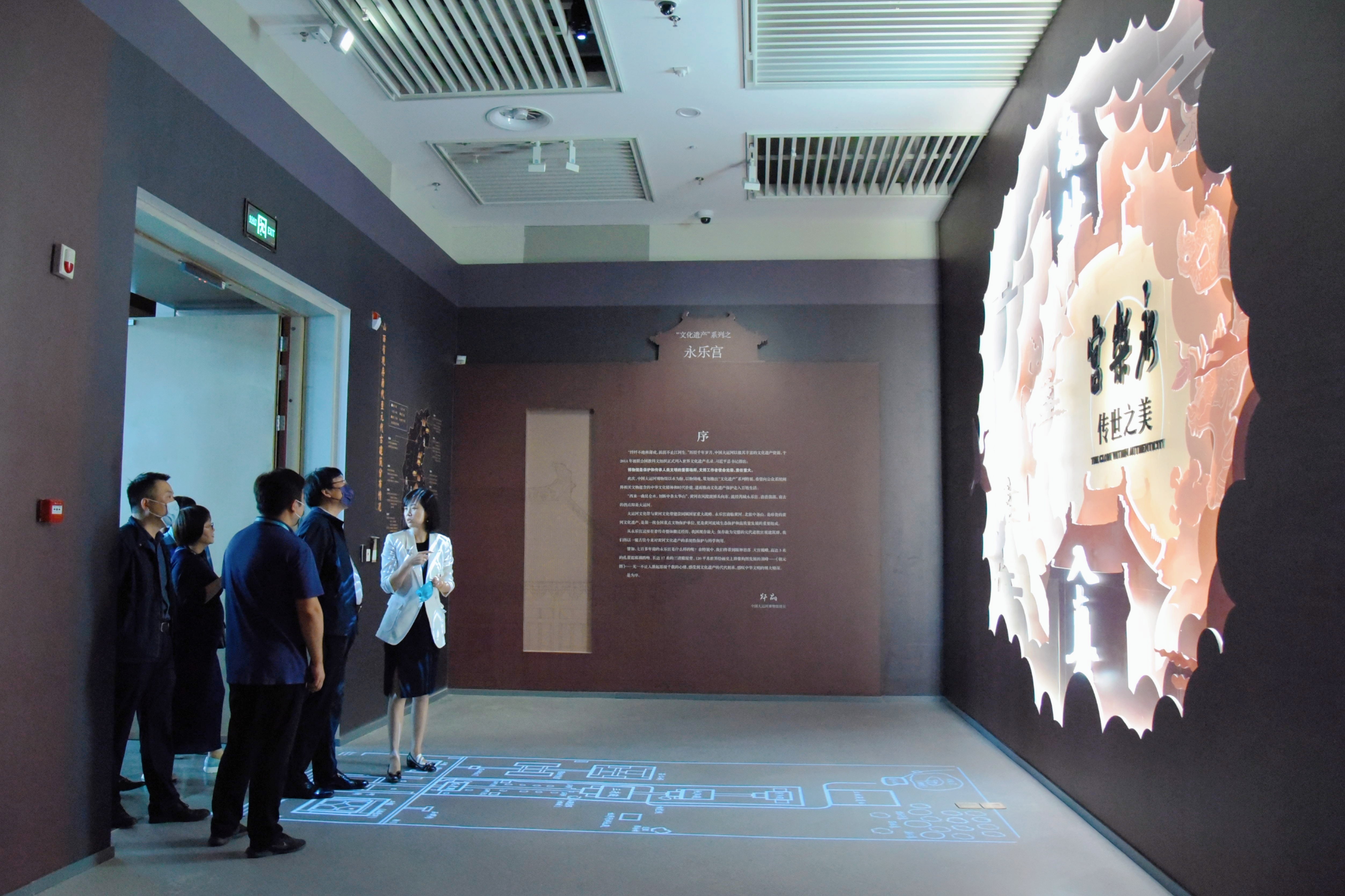 专家组对展厅进行了实地查看,并听取了详细的展陈汇报,总体肯定了展览的形式设计与制作的效果。专家组认为此次展览设计满足博物馆展览要求,制作遵守设计方案,形式设计优良,质量控制、安全生产等各项指标均满足规范及设计要求,内容呈现、视觉展示、空间利用等方面取得良好效果。同时,专家组还建议根据展柜、展品及灯光布置,合理优化现场灯光展示效果,对于展品和观众安全的细节安排方面进行逐一落实,以应对参观高峰和大客流。经过认真评议,专家组同意通过验收。 “观妙入真——永乐宫的传世之美” 作为中国大运河博物馆“文化遗产”系列的首展将全面展示永乐宫传世精品171件(组),涵盖了永乐宫的建筑、壁画、雕塑等珍贵艺术,凝炼迁建过程中展现出的文物保护精神,多维度加强观众对永乐宫的认知。
