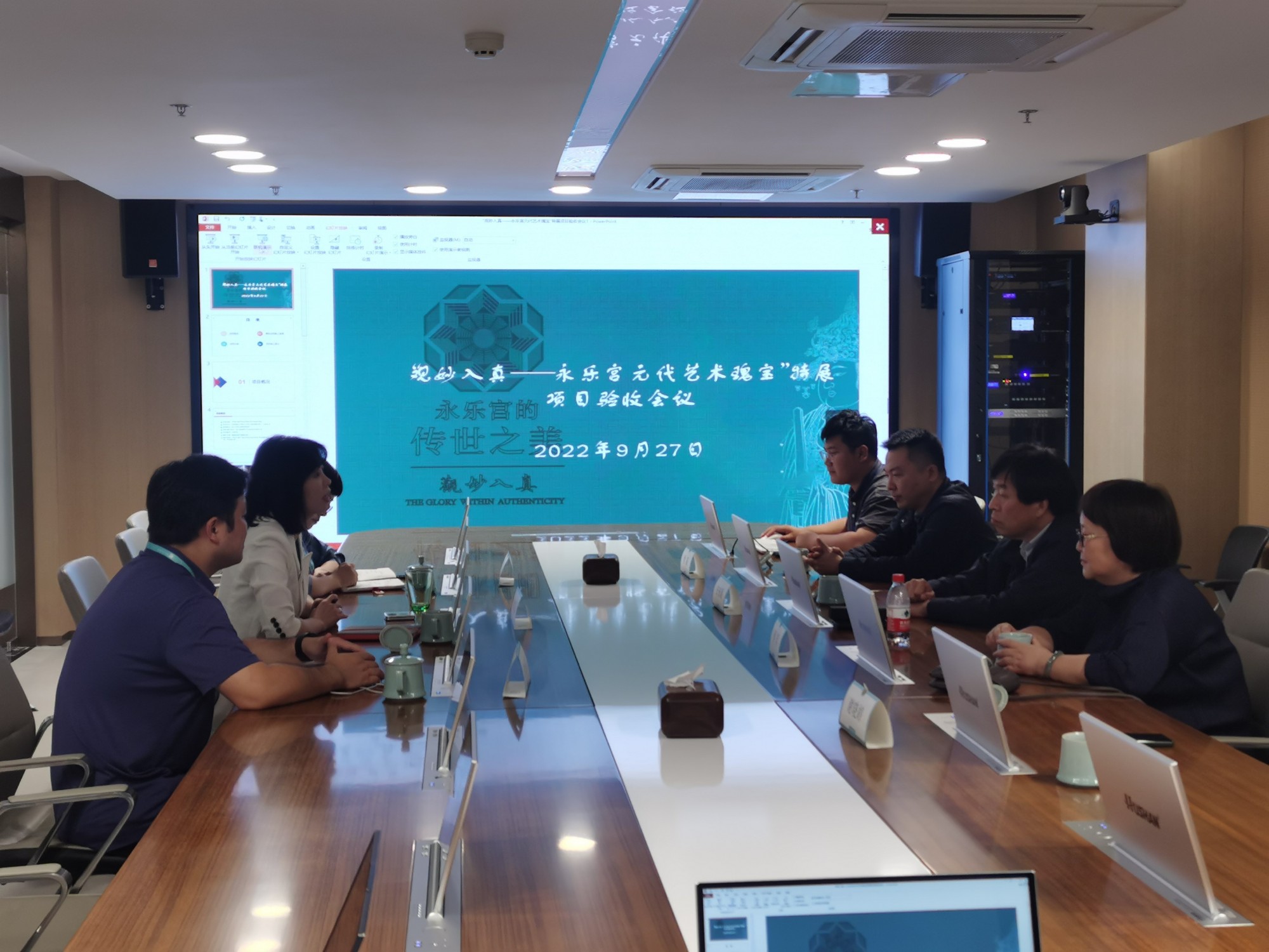 2022年9月27日,中国大运河博物馆组织了“观妙入真——永乐宫的传世之美”展览形式设计与制作项目的验收评审会。会议邀请了国际博协亚太地区联盟主席、上海大学教授安来顺,南京博物院副院长徐森,浙江省博物馆副馆长蔡琴和苏州博物馆馆长谢晓婷参与验收评审。