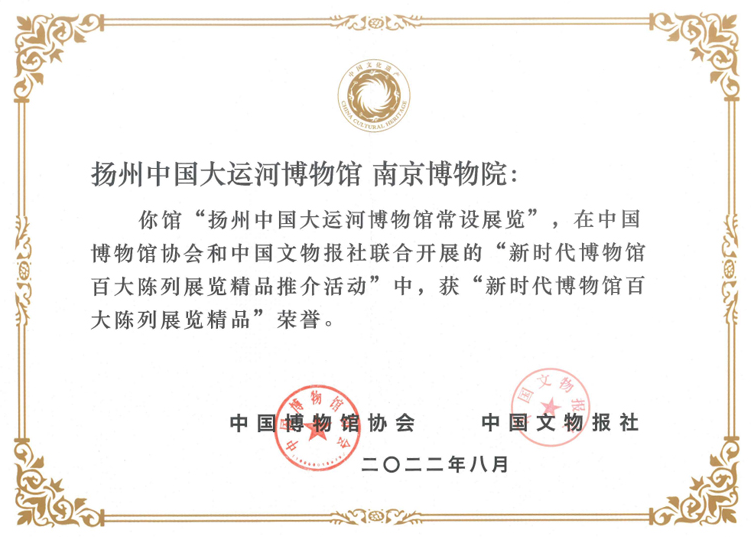 扬州中国大运河博物馆常设展览入选“新时代博物馆百大陈列展览精品”精品奖。