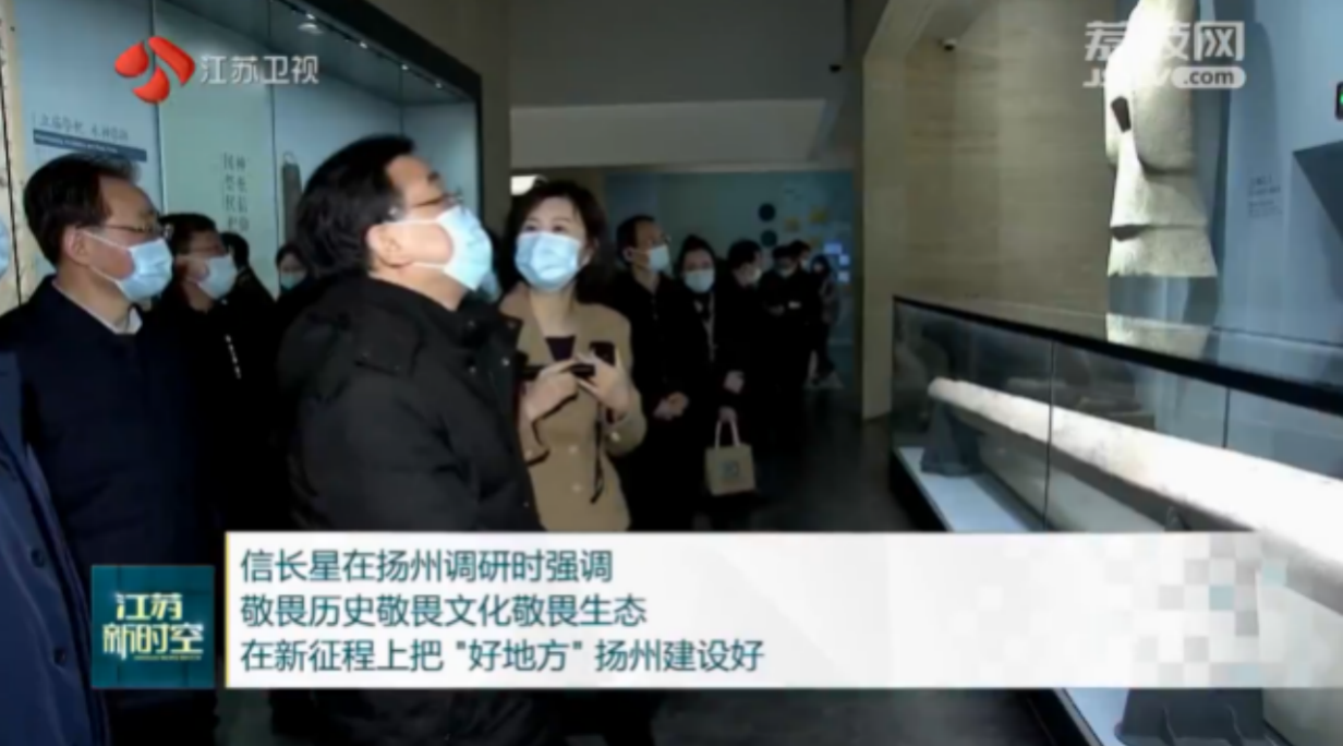 2月14日,江苏省委书记信长星在扬州调研时实地考察中国大运河博物馆,省委常委、省委秘书长储永宏,省人大常委会副主任、扬州市委书记张宝娟,省文化和旅游厅党组书记、厅长杨志纯参加调研。