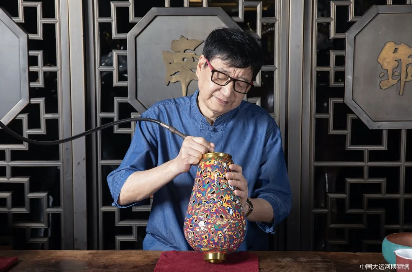 (朱炳仁大师正在创作庚彩铜瓶)