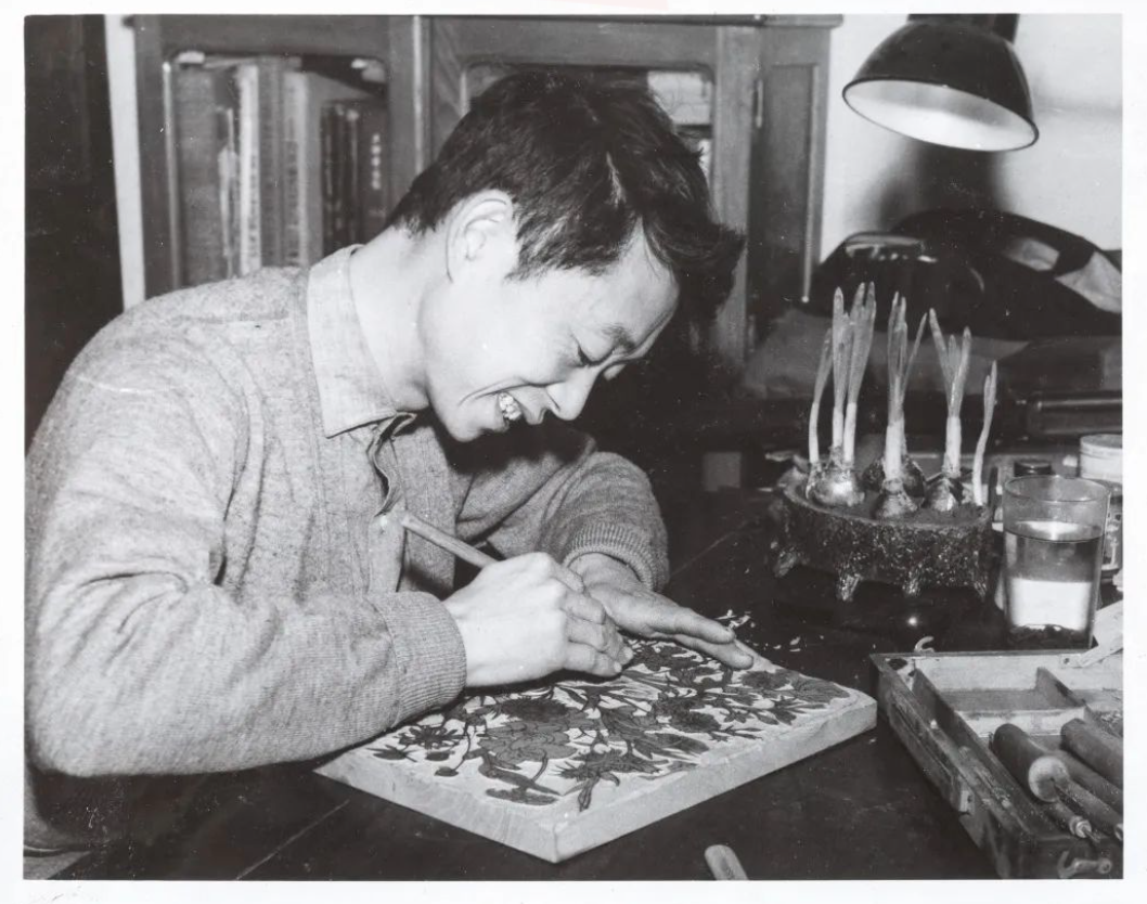 1962年,黄永玉在校尉营美院宿舍刻花卉