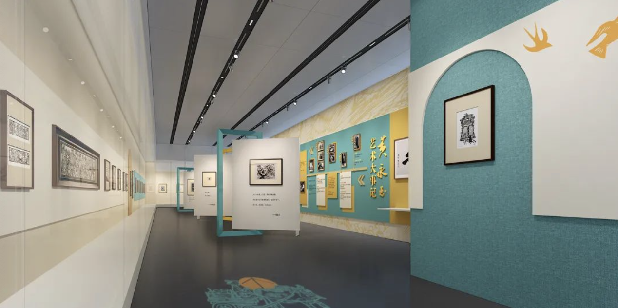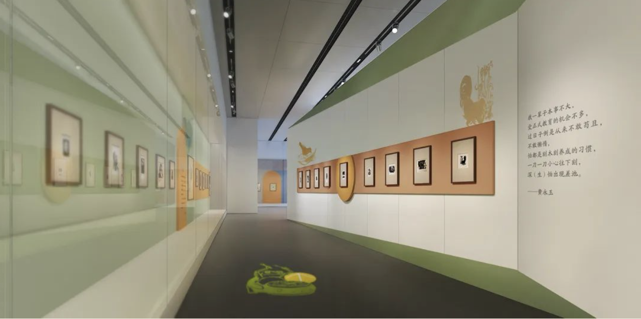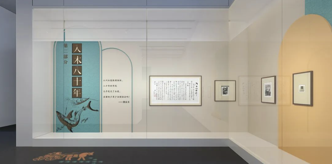 第二部分按照时间顺序,线性展示黄永玉自上世纪四十年代以来创作的系列木刻版画作品,既有黑白木刻作品,也有套色木刻创作、麻胶版,作品极具装饰性。同时,通过TV视频播放黄永玉相关视频资料,并选取《黑妮》《春潮》等经典作品,采取盖章等新颖手段,多元化展示黄永玉作品。