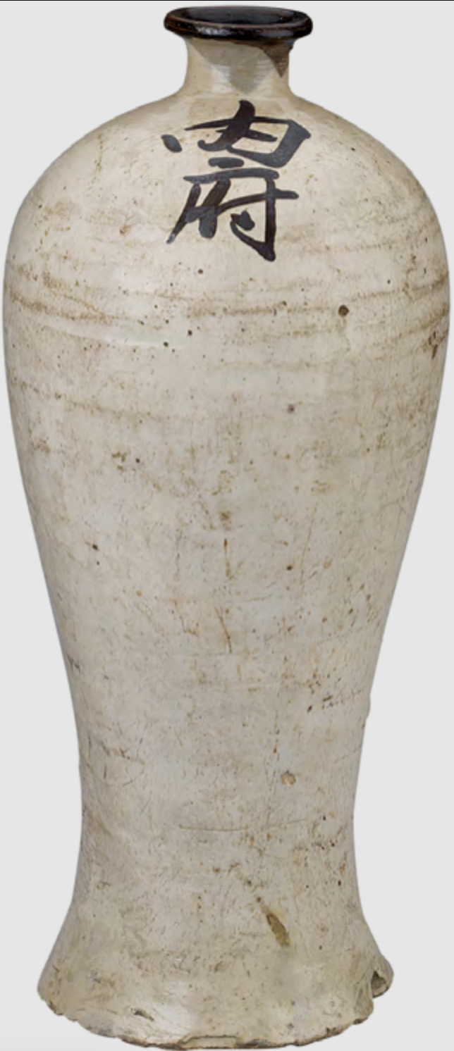 虽然人家看似平平无奇,但是肩部书酱彩楷书“内府”二字,可不多见!瓷器书“内府”款,多见于元代及明初梅瓶,应为宫廷内府所烧造,遗存甚少。