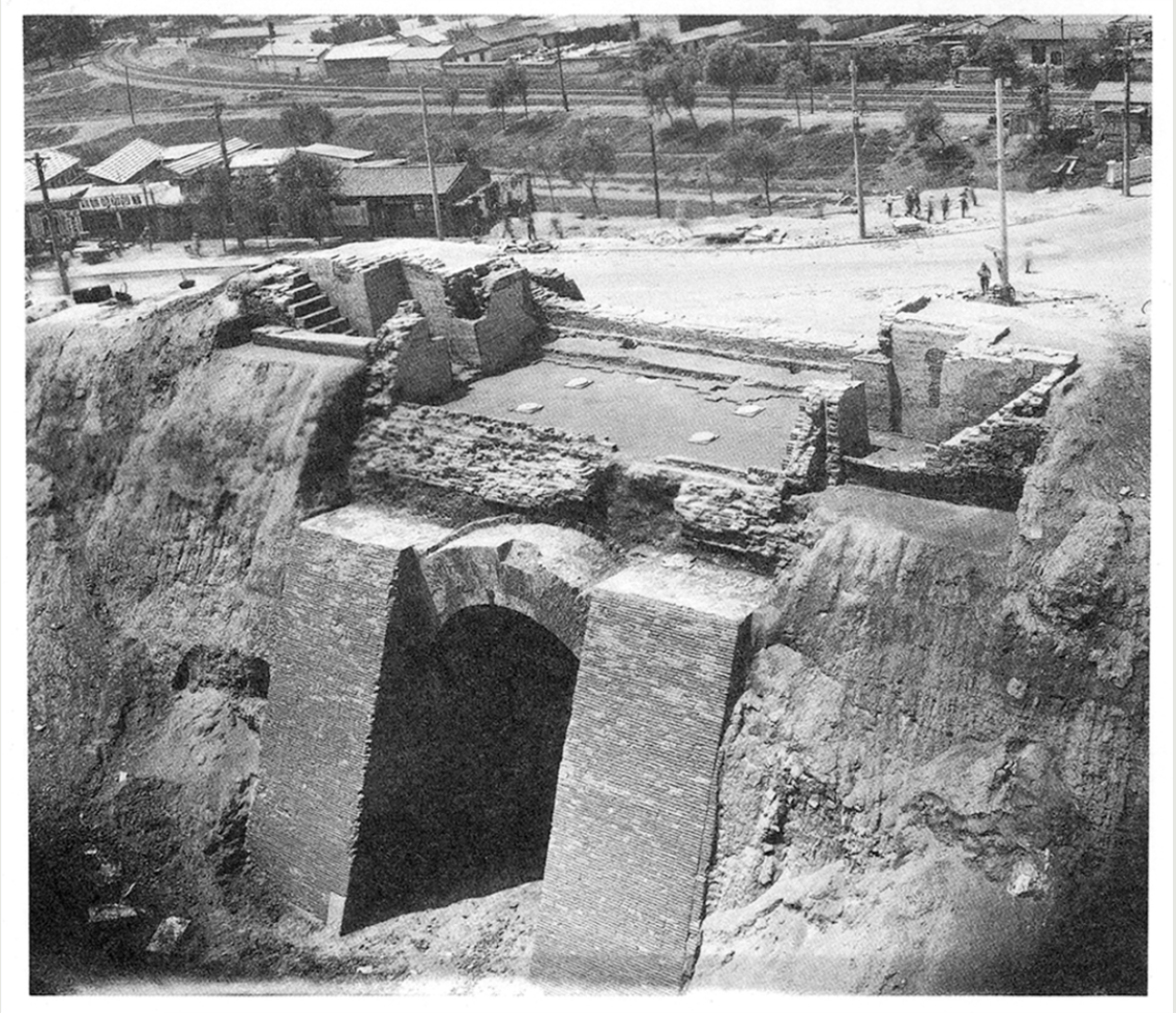 《宦迹图》卷(局部),美国纳尔逊—阿特金斯美术馆藏。该卷以图画形式表现了一位官员的事迹,从画风看应属元代。该卷的局部表现了元大都宫城正门崇天门,下列五个门道,两侧出朵楼、阙楼,为我们认识元大都提供了直观的材料。