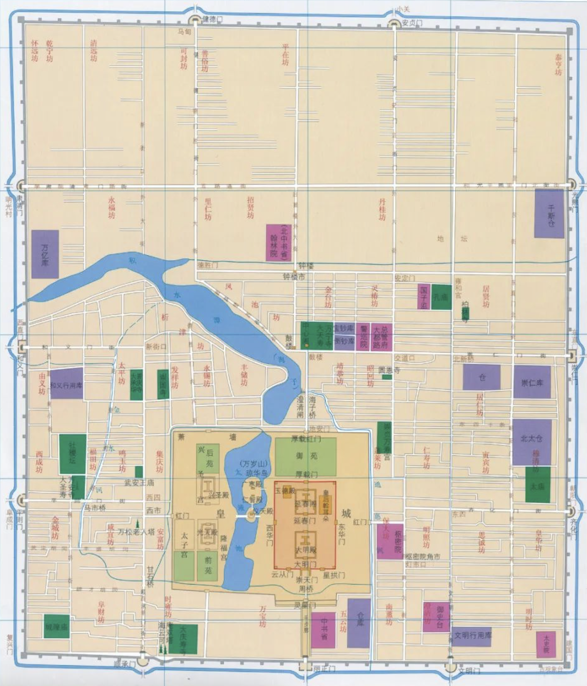 元大都平面复原图(徐苹芳作,采自国家地图集编纂委员会编:《中华人民共和国国家历史地图集》)