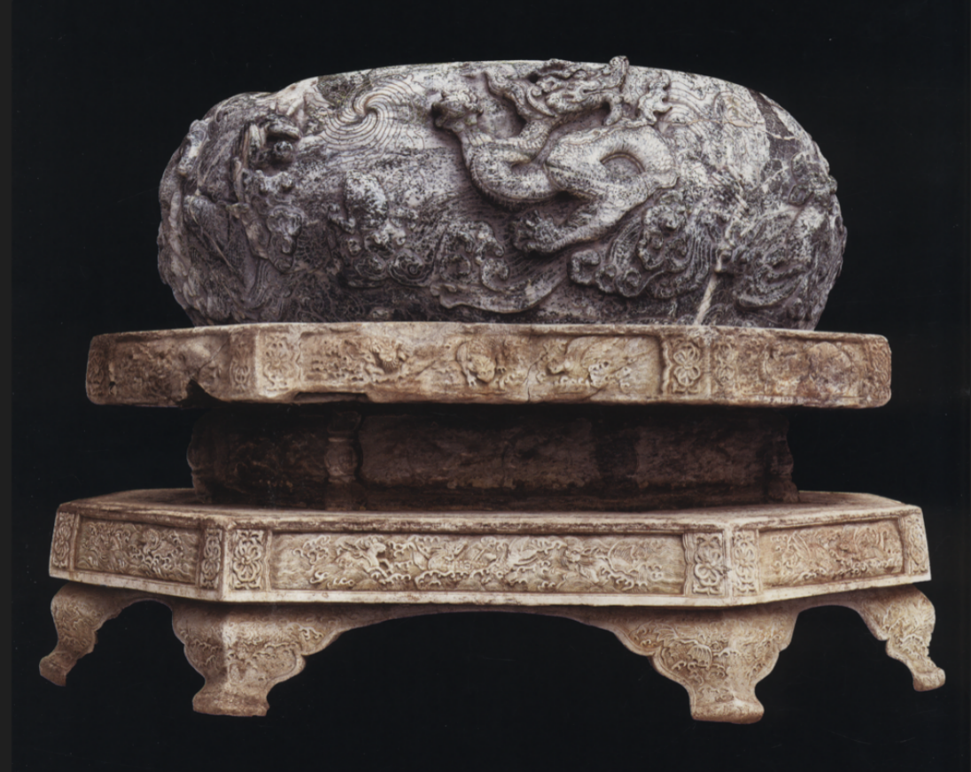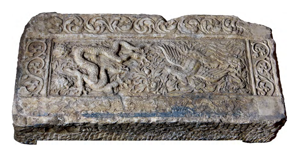 龙凤石雕栏板,北京市明代城墙下元代居住遗址出土,北京石刻艺术博物馆藏。