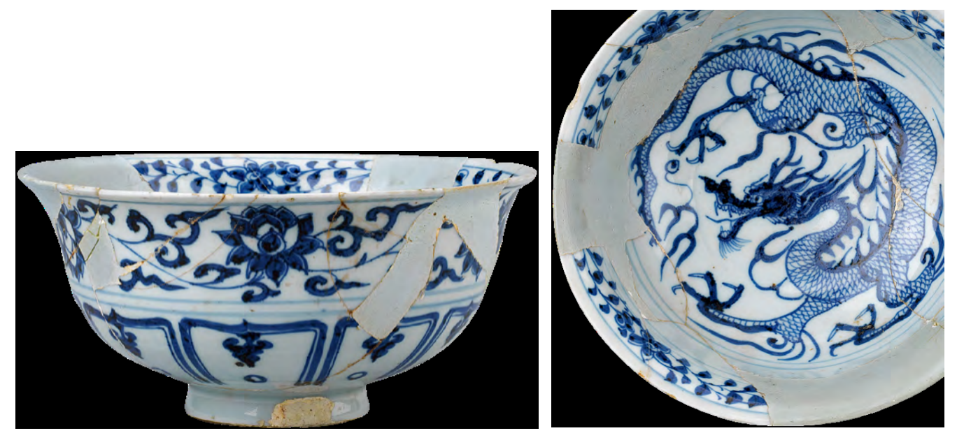 青花龙纹碗,1970 年北京市西城区旧鼓楼大街豁口元代窖藏出土,首都博物馆藏。