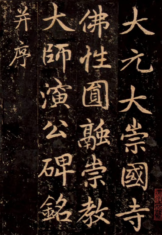 清拓《崇国寺演公碑》册,故宫博物院藏。《大元大崇国寺佛性圆融崇教大师演公碑》由赵孟頫于元仁宗皇庆元年(1312)奉敕撰写并书丹。赵孟頫时年59岁,人书俱老。
