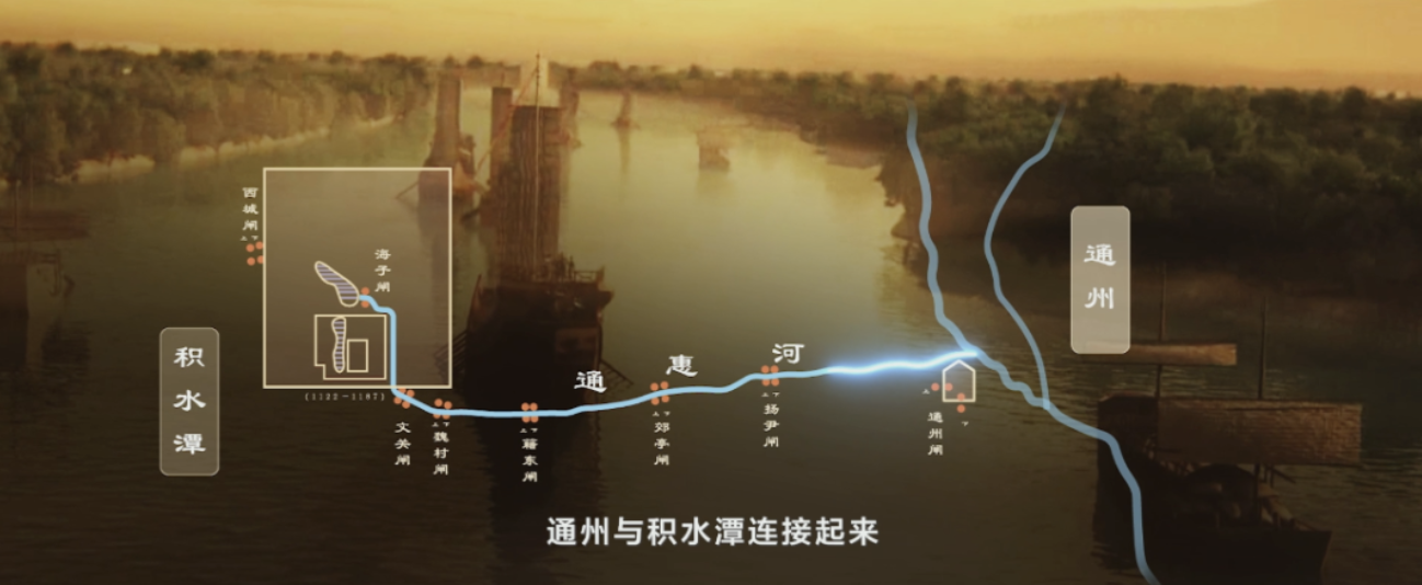 当年工程竣工之后,忽必烈过积水潭,见“舳舻蔽水”繁荣景象,赐名为通惠河。从此,江南粮船货物通过大运河可直达积水潭,全国的经济命脉荟萃于此,繁华富庶,区宇升平,也为元大都成为“天下大都”的高峰奠定了基础。