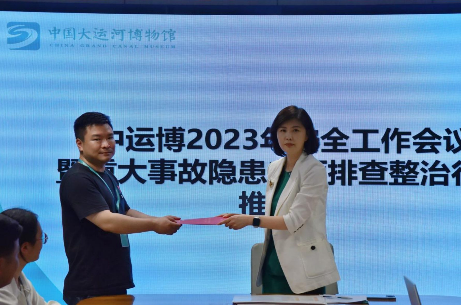 为深入推进“安全生产月”活动,贯彻落实《全省文物行业重大事故隐患专项排查整治2023行动实施方案》有关精神,6月28日,中运博召开安全工作会议暨重大事故隐患专项排查整治行动推进会。会议由馆长郑晶主持,分管领导、中层干部及各部门安全员参会。