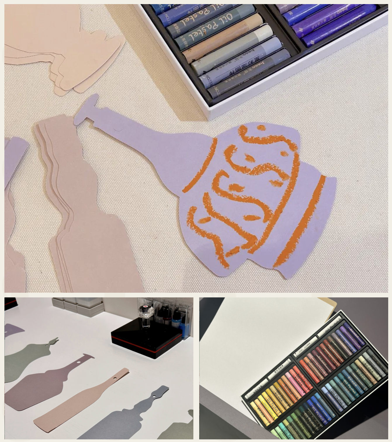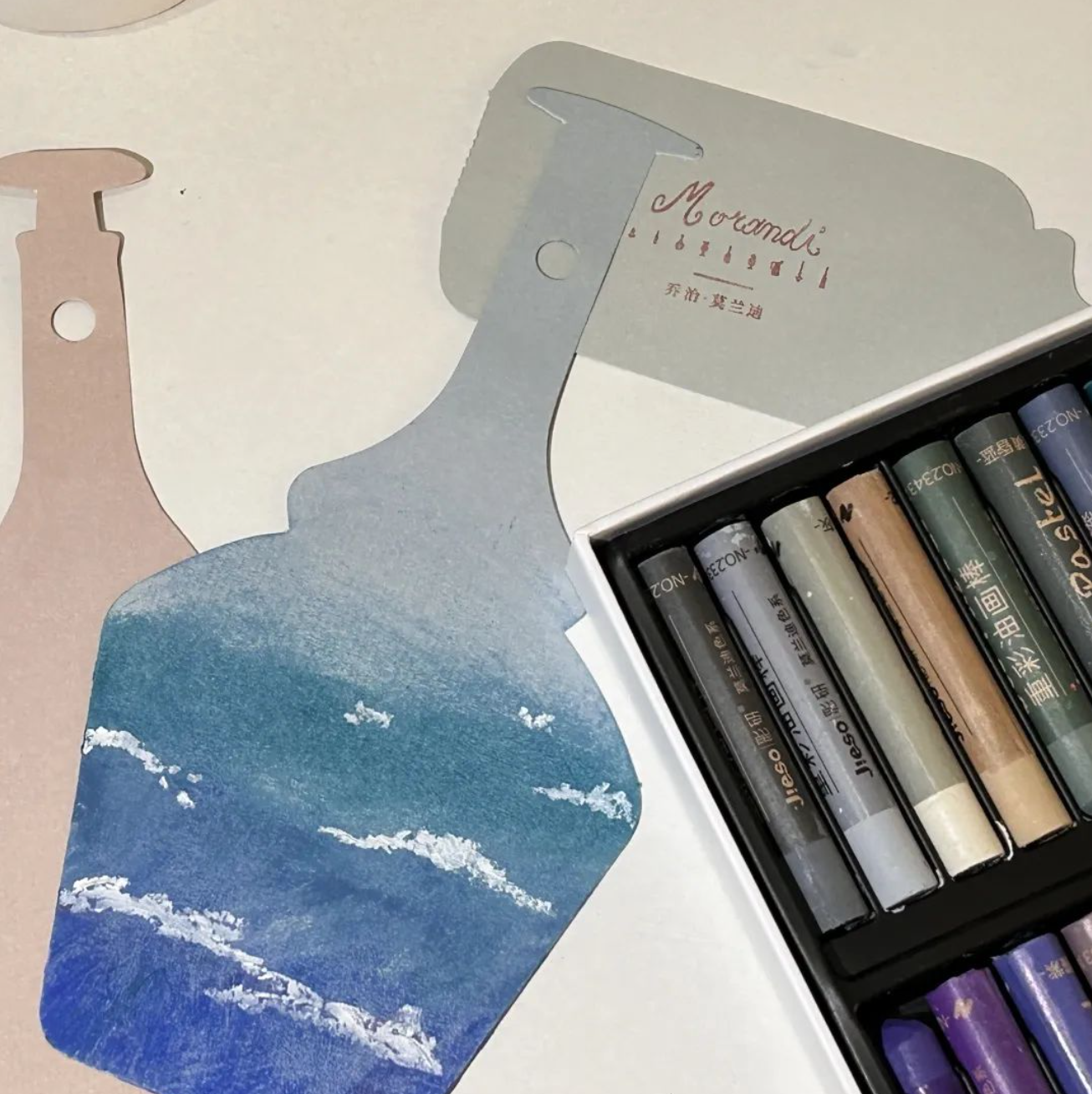 本次展览为观众们准备了画板和莫兰迪色的油画棒,可以挑选自己喜欢的莫兰迪色,临摹大师真迹,抑或捕捉当下灵感,在互动票特制的小瓶子上留下观展的独家记忆。