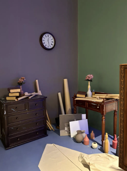 颜料斑驳的画架、低饱和的调色盘、落满尘埃的瓶瓶罐罐、一束穿进窗子的光...都无言地传达着时间的永恒。