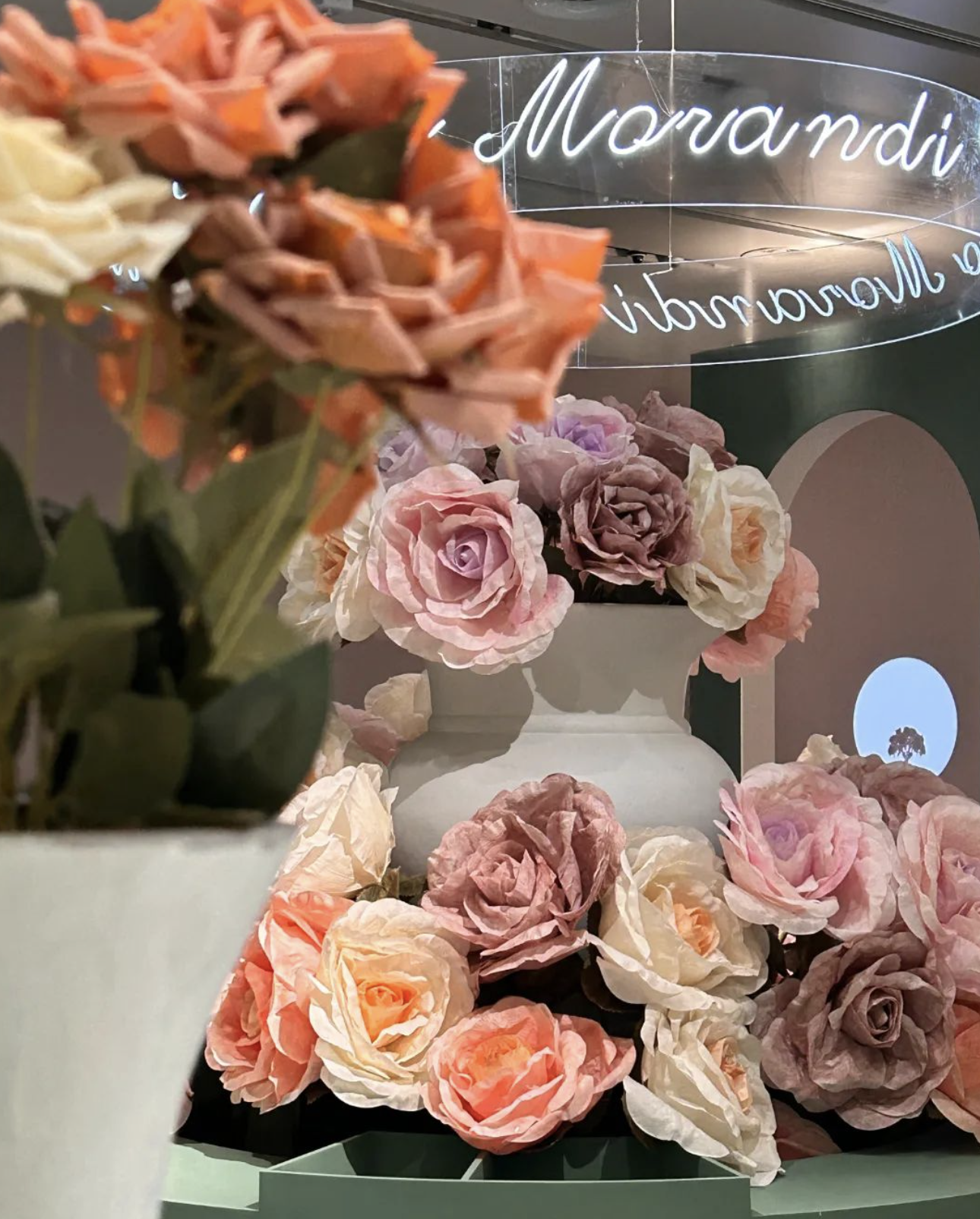和这些超大的莫兰迪瓶子同框,仿佛自己也穿越到静物画之中,用镜头定格这一瞬间吧。