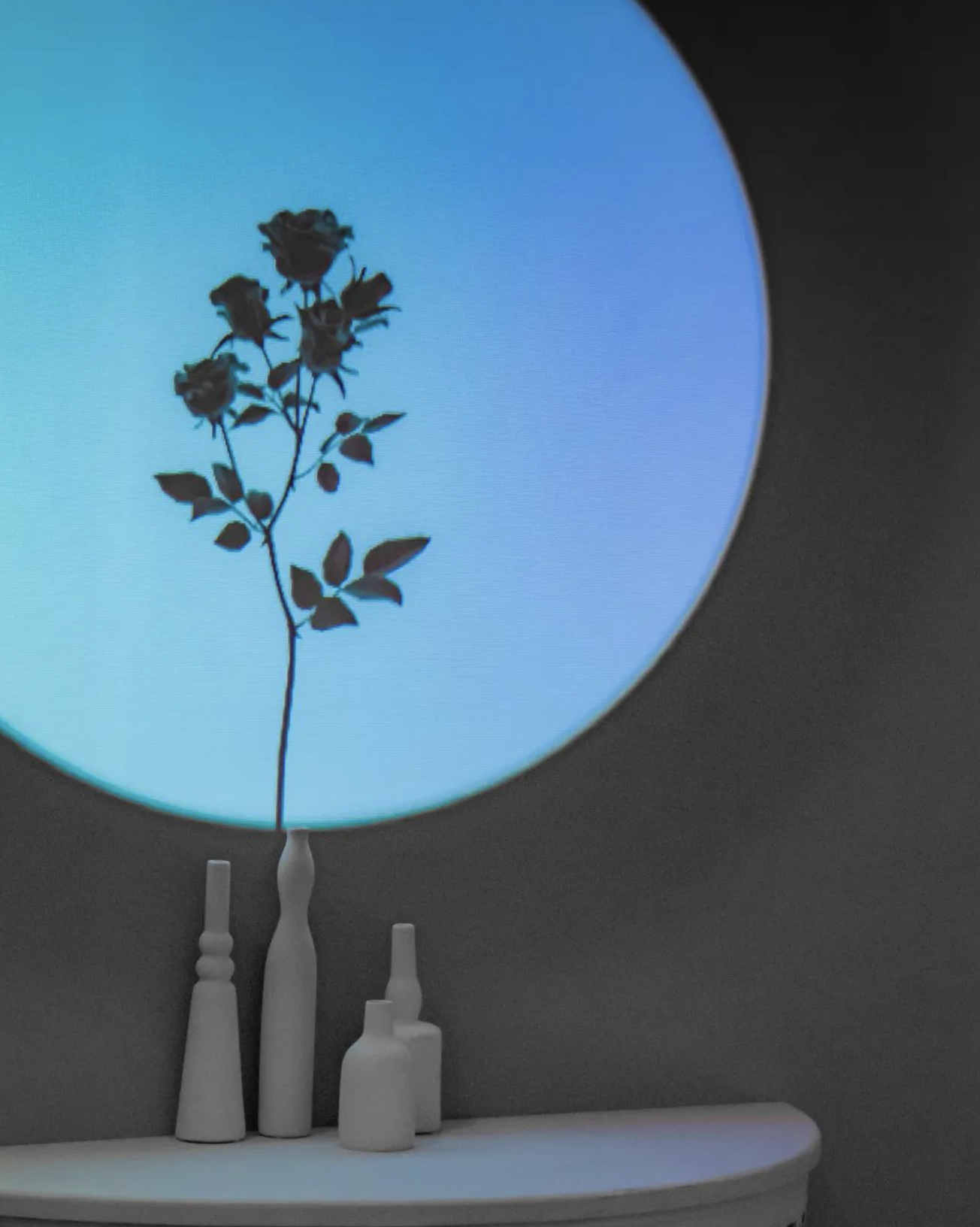 这是一个巨大的玫瑰装置,在呼吸之间,瓶中玫瑰花缓缓盛开,空气中弥散的淡淡的香气。