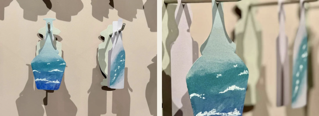 3、将创作好的“小瓶子”挂在位于出口处的互动墙上;