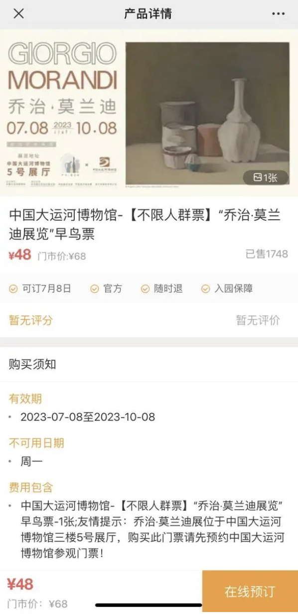关于“乔治·莫兰迪”门票的说明