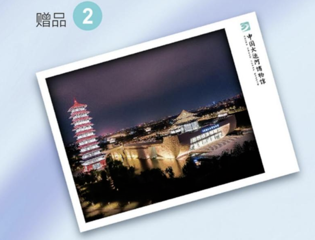 中国大运河博物馆拥有迷人夜景,三湾之畔,主场馆、今月桥、大运塔相映生辉,全彩印刷的夜景纪念卡是一份值得收藏的独家记忆。
