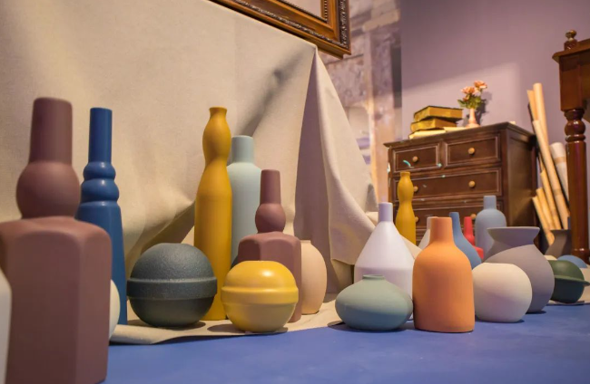 展厅中也有许多莫兰迪色系的搭配,