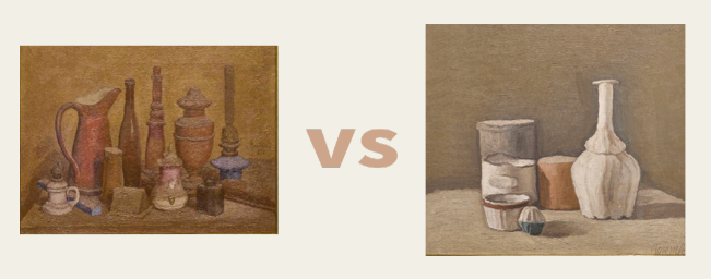 这两幅图分别是莫兰迪不同时期的作品,哪一种色彩更会让你产生平和、静谧的感觉呢?