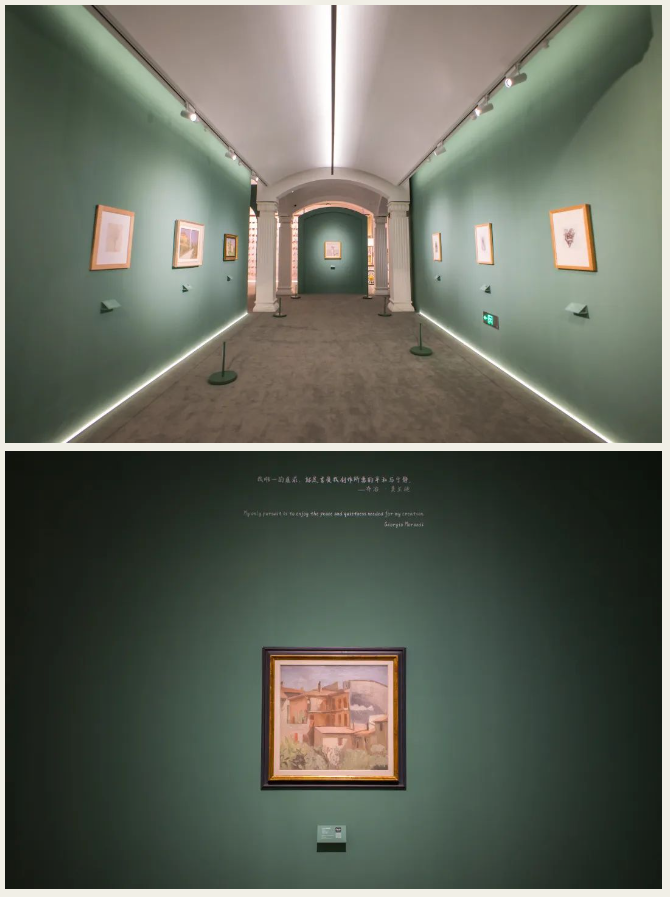 故而,第三单元的墙壁也选取了莫兰迪眼中的某一种绿,期待大家走进、感受到莫兰迪平日所见格里札那的风景。
