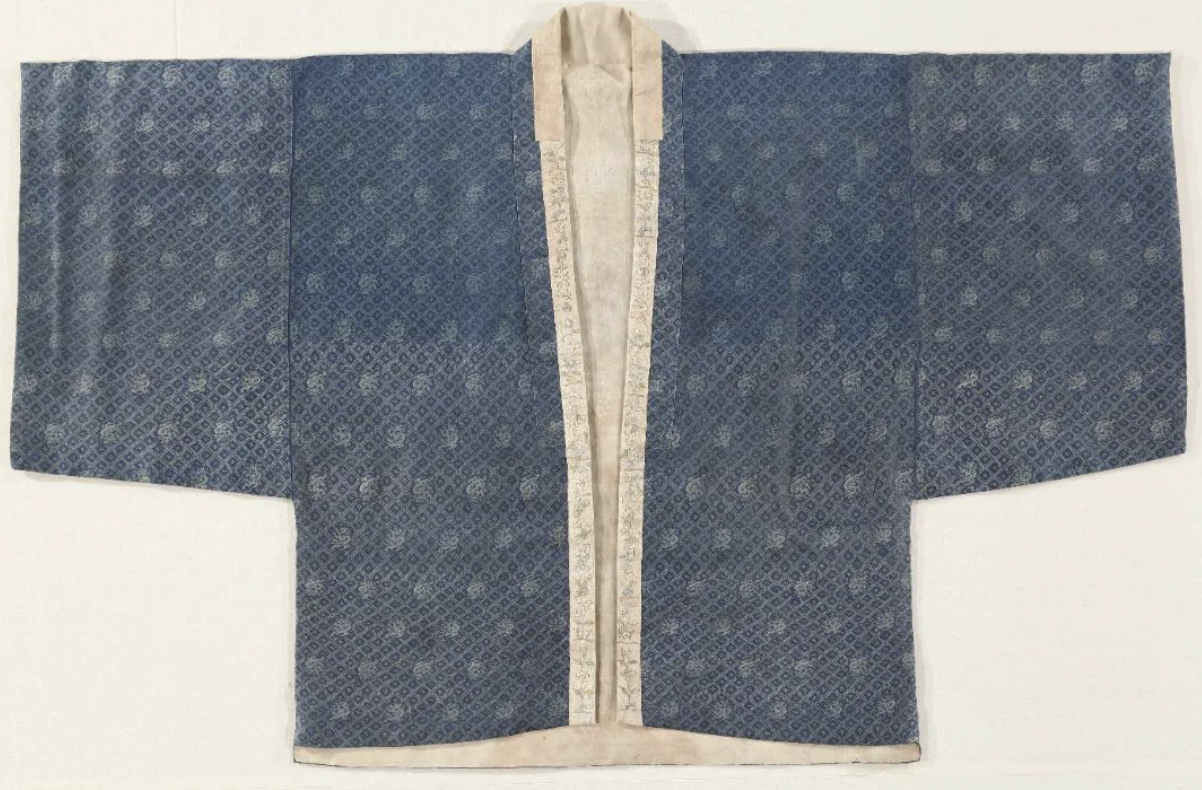 蓝地菱格“卍”字龙纹双色锦对襟夹袄