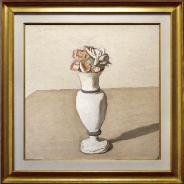 在绘画中,莫兰迪同时也极力追求着花卉的纯粹表达和原型复现,对于花朵的选择,他有着极高的要求与审美。一开始他想要寻求花朵的新鲜而不断地买入鲜花作为描摹素材;他也曾因花季已过,买不到写生用的新鲜玫瑰花而向亲友抱怨。大概在1940年代以后,花卉开始逐渐成为其画作的重要材料,他从形态、结构、颜色和色调出发,极为注重花卉及其盛器在视觉上的整体呈现。