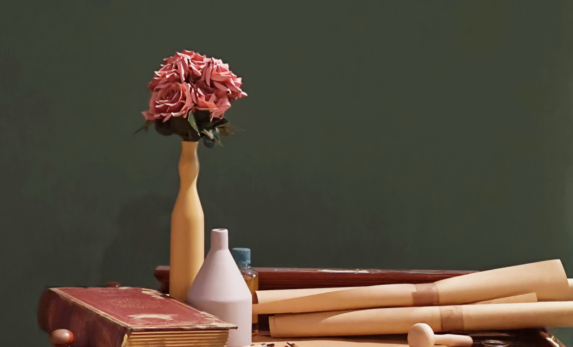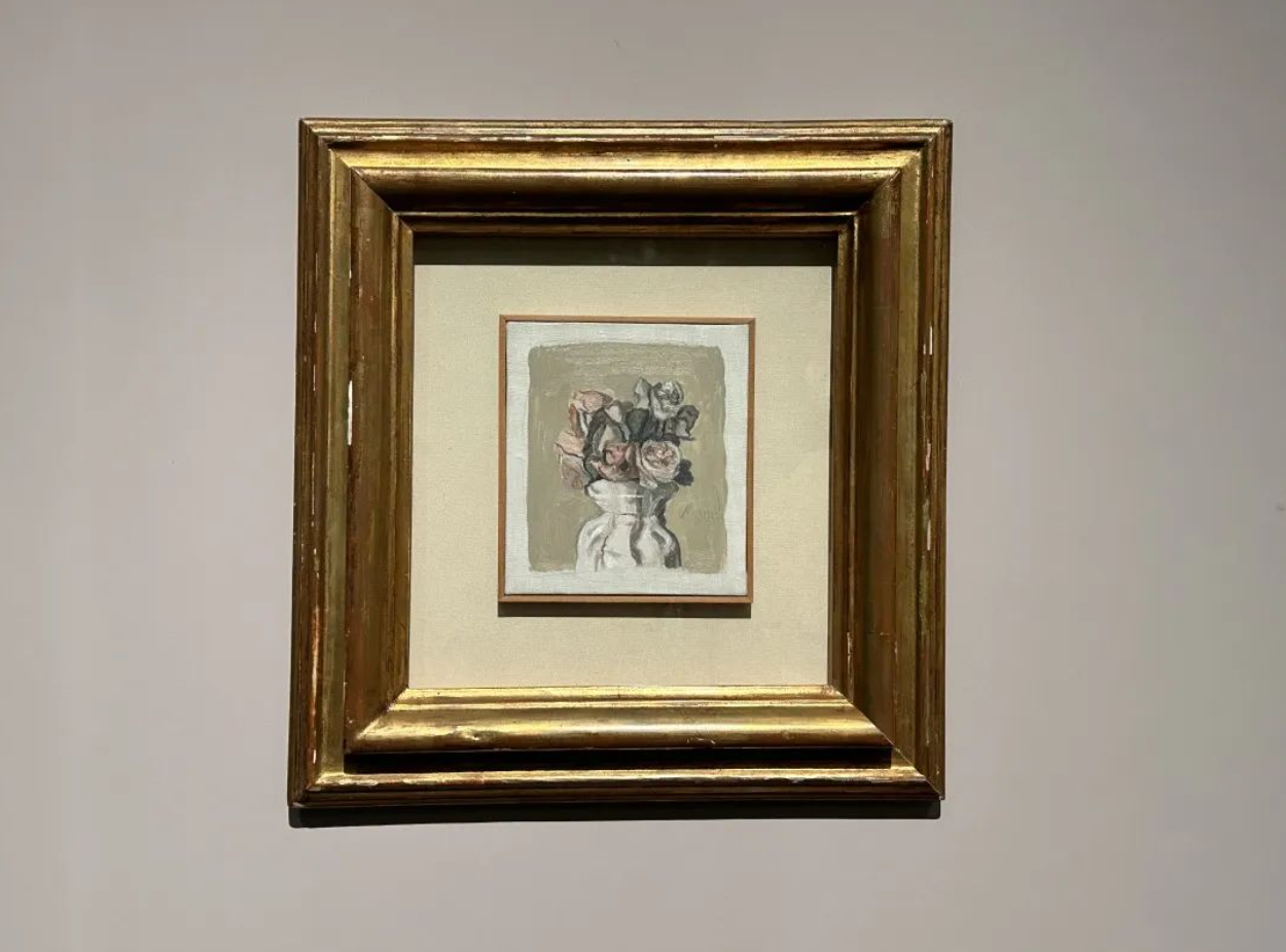 此外,相对于其他种类的花朵,莫兰迪对于玫瑰可谓是极其钟爱,在他的多幅作品中都可以找到玫瑰花的身影。他笔下的玫瑰花大多含苞待放,紧紧地挨在一起,颜色同样也融入了莫兰迪画作中所特有的灰色,不张扬、不突出,给予人极大的平静与安宁。