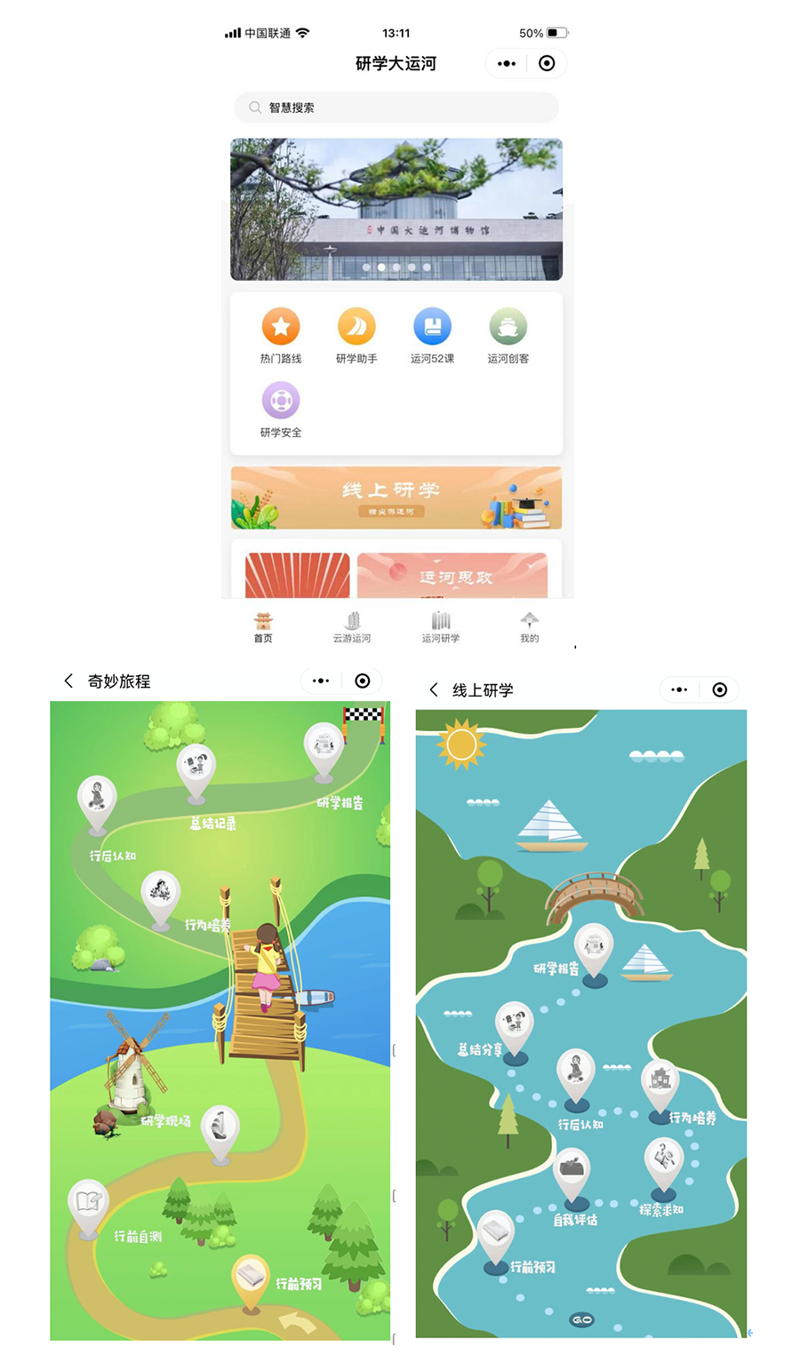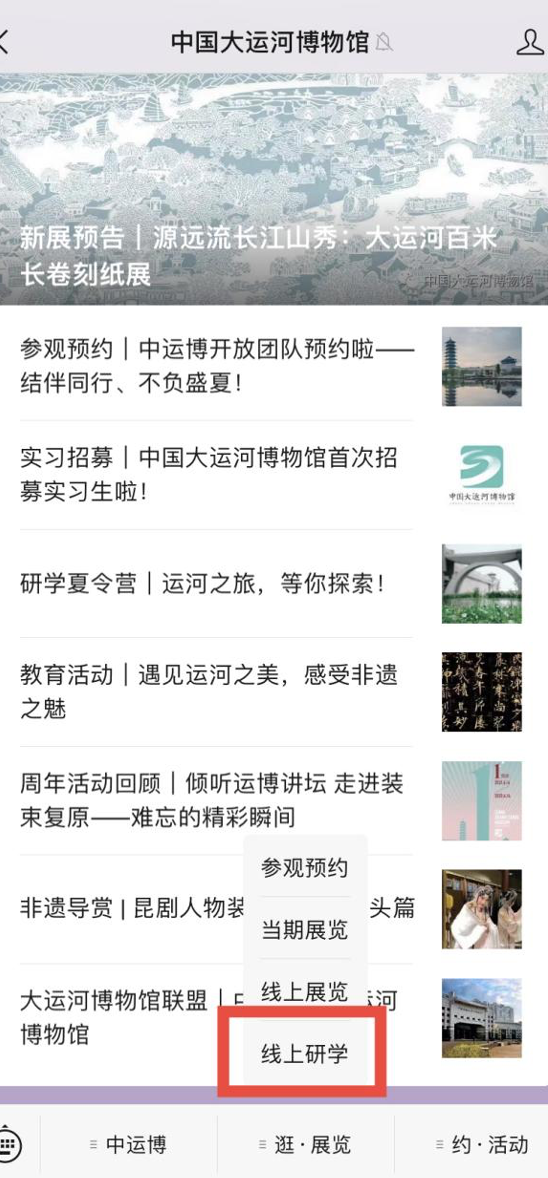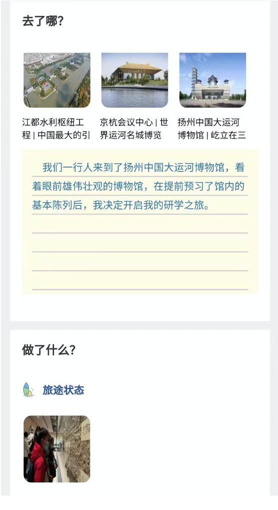 为了让更多的青少年“创新性”参与研学活动,中国大运河博物馆尝试打破疫情的阻碍、地域的限制,开辟线上研学路径,携手“壮游人生教育科技”,上线“研学大运河”云平台,统筹线下研学活动,发起云端研学项目,使研学变得便携通达、快人一步、“触手可及”。