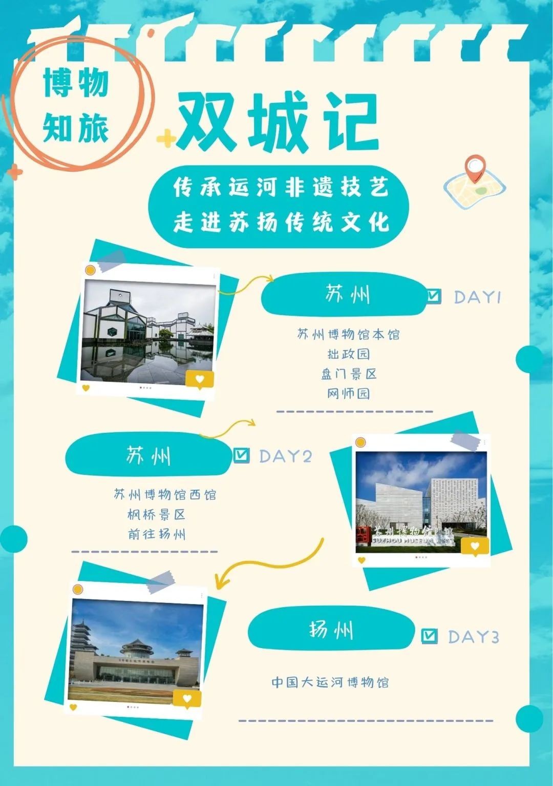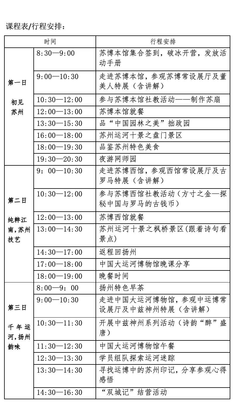 中国大运河博物馆和苏州博物馆皆为大运河博物馆联盟的重要成员,同时也是扬州与苏州两座运河城市的旅游名片。双方博物馆利用特有的展览和社教优势资源,携手全球领先的一站式旅行平台携程集团,首创双城研学活动第一季“传承运河非遗技艺,走进苏扬传统文化”,将社会教育项目“双城化”、“平台化”、“产业化”,使博物馆教育进一步打破边界,深度延伸。