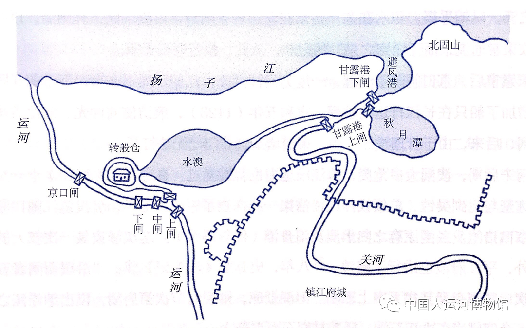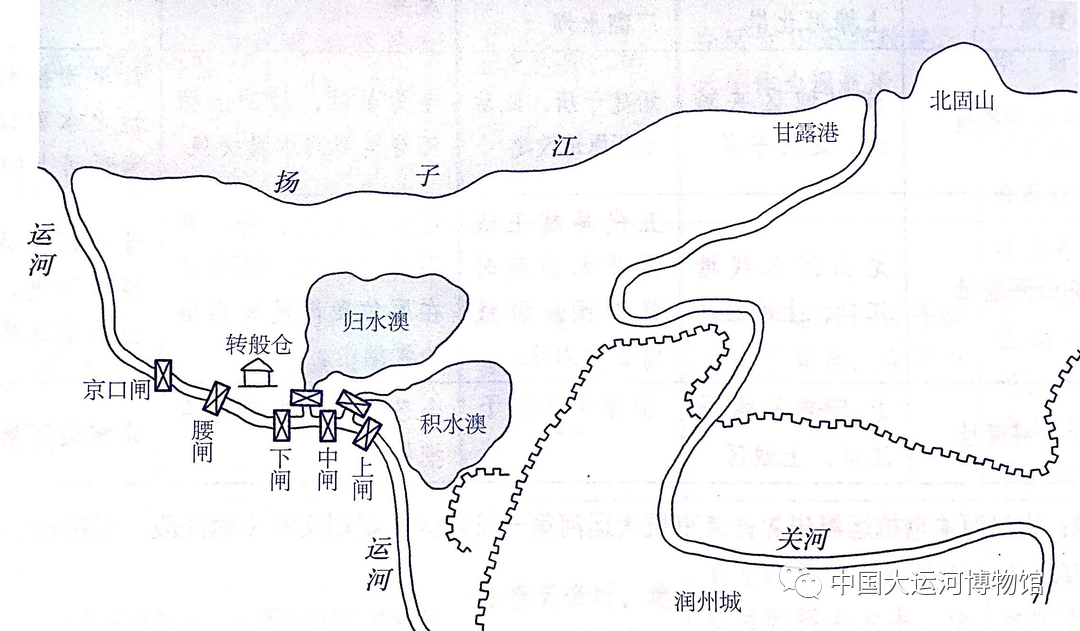 北宋元符二年(1099年)京口澳闸系统示意图(据《中国科学技术史·水利卷》改绘)