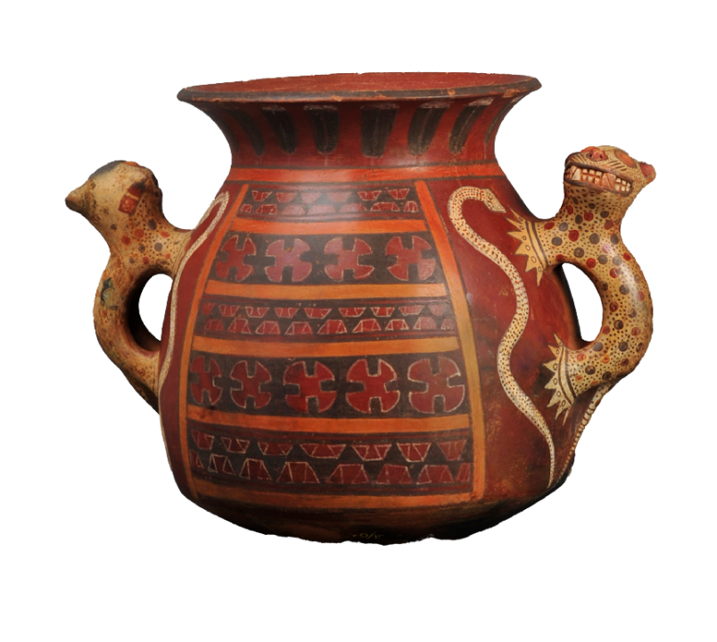 印加帝国时期·美洲虎多把手彩陶瓶