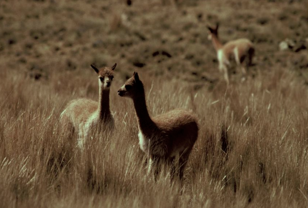 在安第斯山脉的高海拔地区和曾经的秘鲁海岸地区,生活着美洲驼(大羊驼)。羊驼在日常生活中不仅可以提供宝贵的驼肉、用于驮运货物,还在与神灵沟通时作为祭品和护身符,它们的粪便可作为燃料和化肥、骨头可作为笛子和农具,它们多彩的毛发还可以用于纺织服饰,比如印加精英佩戴的发带就是用染成红色的合股羊驼毛制成的。巧手的印加手艺人们擅长在密集的彩色驼毛纬线和紧绷的棉花经线中创造出象形纹样。羊驼还出现在如今秘鲁和玻利维亚的国徽中呢!