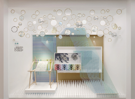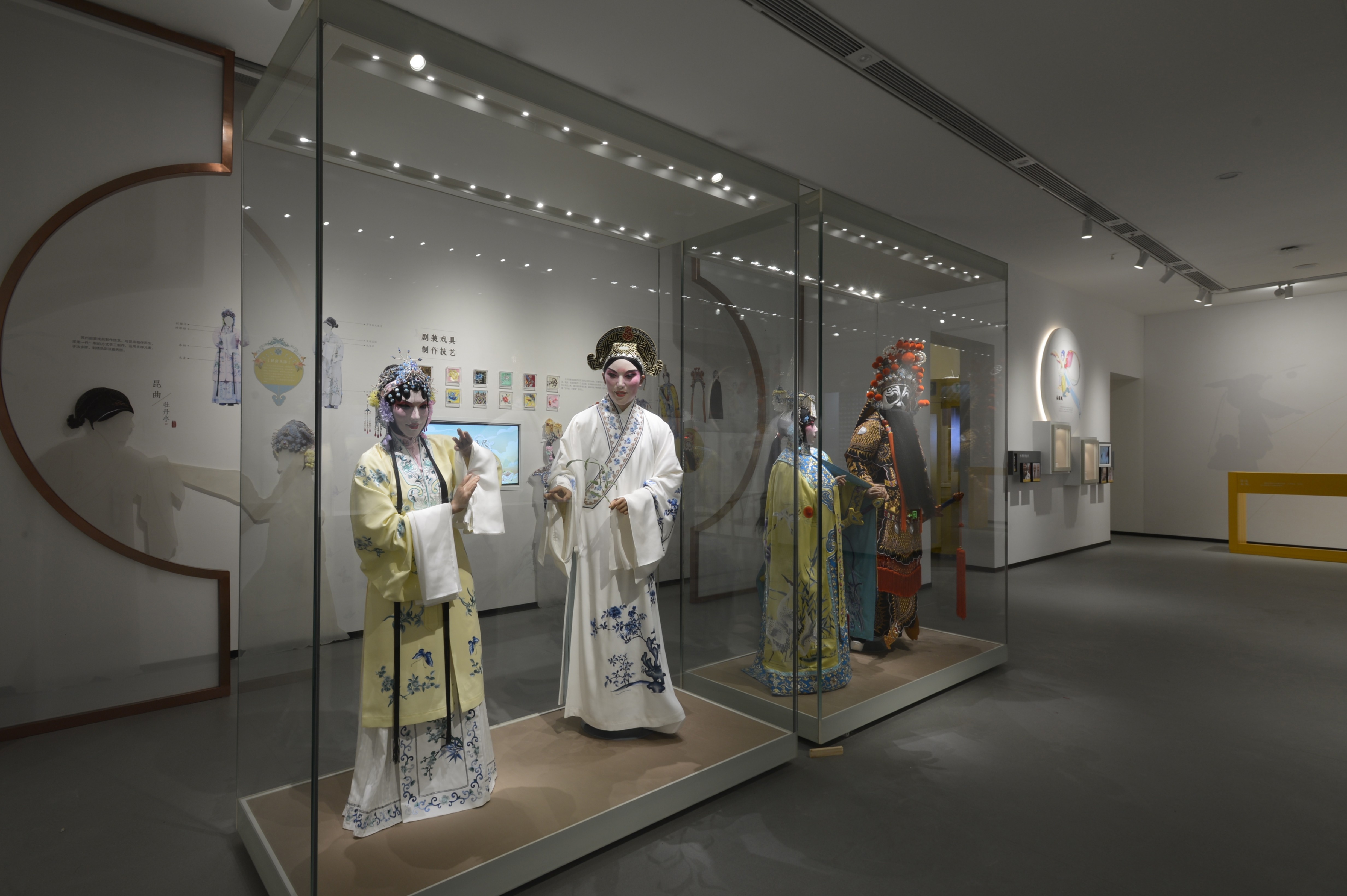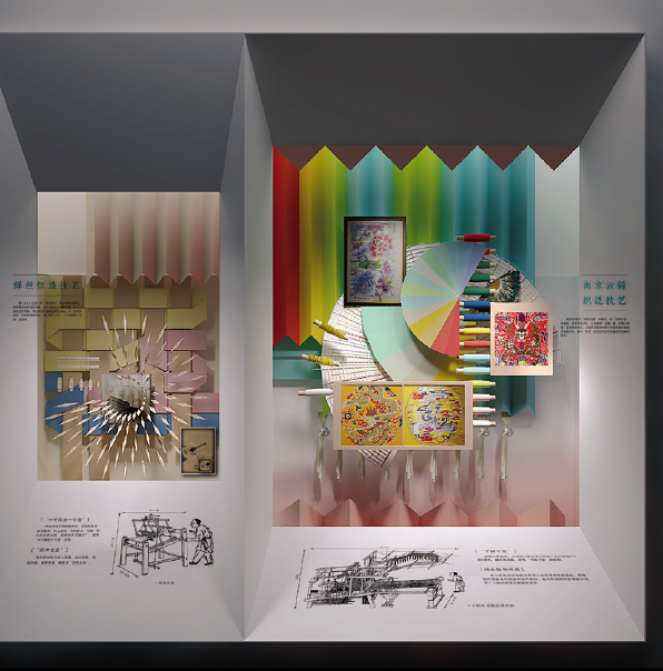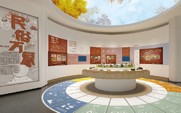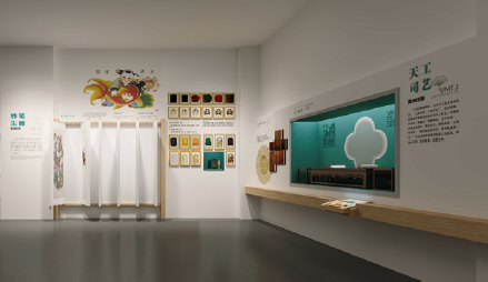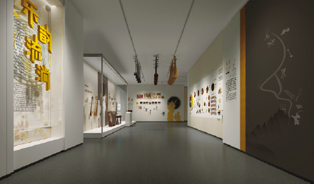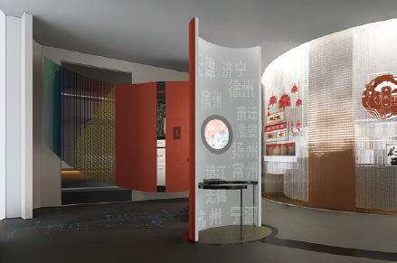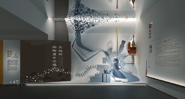 漫步在非遗厅,感受到的是简约雅致的背景,衬托出传统文化在当代的活力。设计理念以人为本,以观众参与体验为核心,考虑不同层次、年龄观展群体的需求,用静态(展品)、活态(展示、展演)相结合的表现形式配以简练的文字描述,突出非遗项目的观赏性,力求内容与形式的高度统一。展厅硬件及空间的多功能性,满足了多样化的展示、展演及体验的需求,突出非遗的过程性展示和参与互动,全方位调动观众视觉、听觉、触觉等多种感官体验。运用创新的思维方式和轻松活泼、简约新颖的设计风格诠释“空间”“过程”“人”三者之间的关系,描绘大运河两岸非物质文化遗产带来的美好生活。